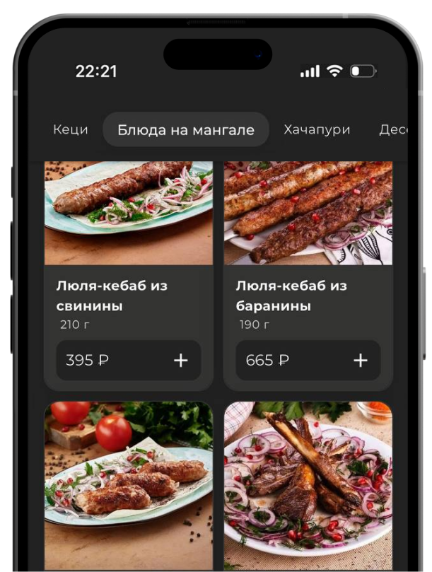 Мы предлагаем разнообразие блюд и выбор кухни под настроение . В нашем приложении есть грузинская , европейская , халяль , азиатская кухня . Так же есть доставка шашлыков , доставка хинкали , доставка хачапури , доставка чебуреков